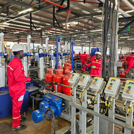 A complete high-tech plant with a capacity to fill 2800 cylinders of various sizes per hour, with potential for future expansion. In addition, we built a line for maintenance and refurbishment.