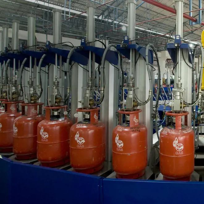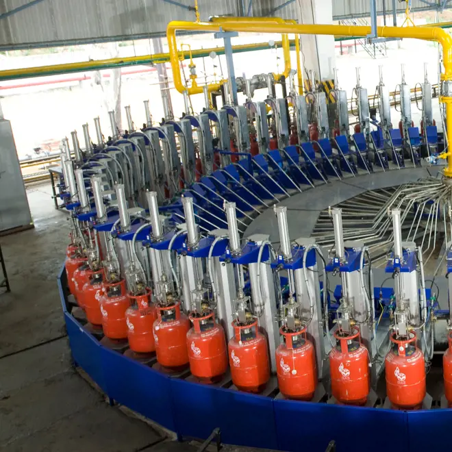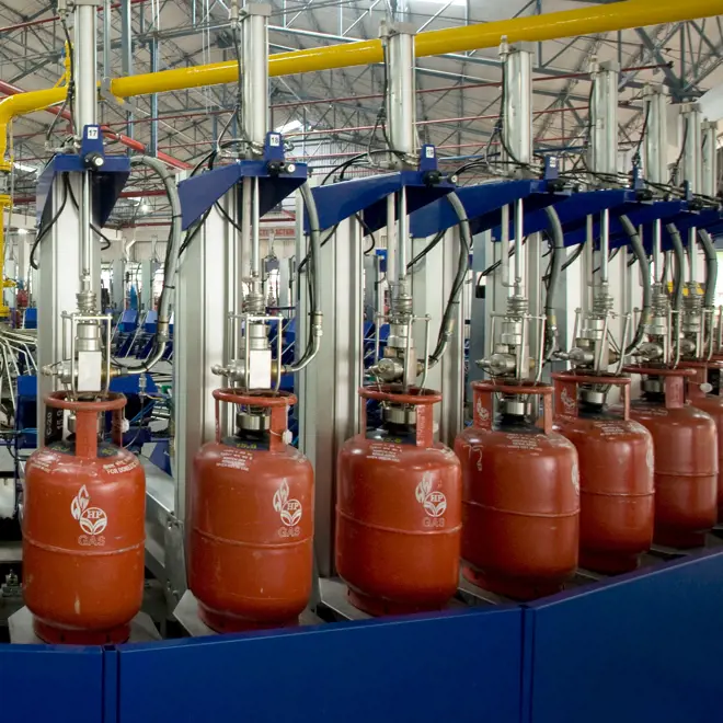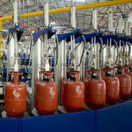 The need for cylinder maintenance was also reduced. As the operation is non-stop, all procedures are performed while the cylinders are flowing smoothly along the conveyor line without knocking into each other, which reduces the amount of damages to the cylinder surface. Utilities are reduced as well – compressed air and electricity, e.g. – and the weighing precision is second to none, ensuring that the LPG is used to the fullest extent.