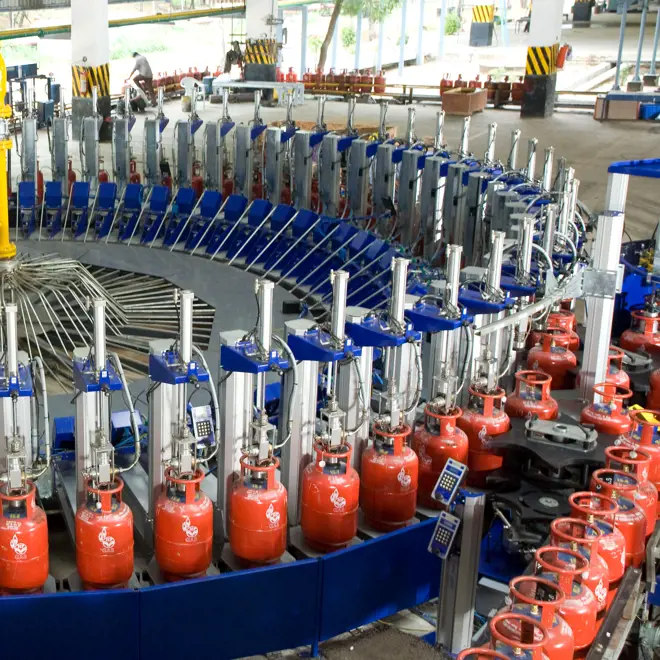 The primary advantage of FLEXSPEED is the high capacity. HPCL's FLEXSPEED carrousel runs 3600 cylinders per hour. However, the fact that it is able to fill cylinders of different sizes in the same production round is important too, as there are two different cylinder types in circulation in India (14.2 kg and 19 kg).