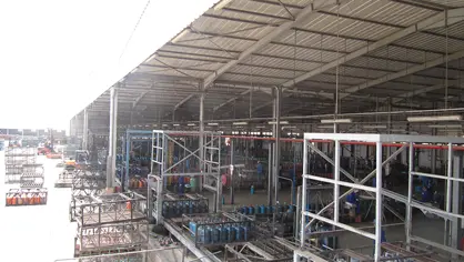 A complete high-tech plant with a capacity to fill 2800 cylinders of various sizes per hour, with potential for future expansion. In addition, we built a line for maintenance and refurbishment.