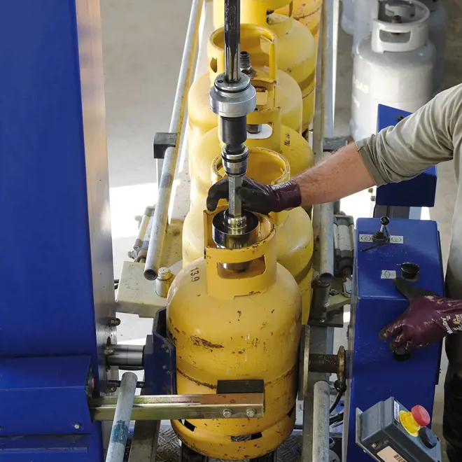 The reconditioning line, which VLPG also requested, includes a shot blaster that strips old paint, a painting tunnel that applies fresh, powder-based paint, and an oven to polymerise the paint. Finally, the logo gets painted on, and the cylinder looks as good as new. In fact, the result was so good that one of our own was taken aback by it: