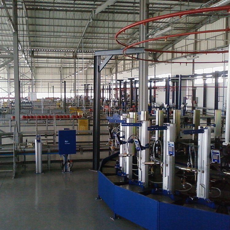 - Four complete carrousel filling lines for 3 kg cylinders