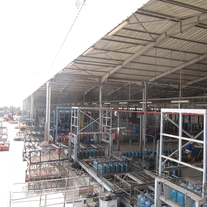 - Complete filling hall with a total of eight carrousel filling lines capable of filling all types of cylinders in the Moroccan market