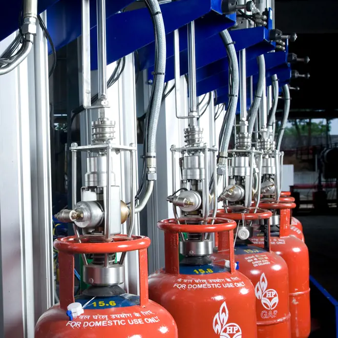 The primary advantage of FLEXSPEED is the high capacity. HPCL's FLEXSPEED carrousel runs 3600 cylinders per hour. However, the fact that it is able to fill cylinders of different sizes in the same production round is important too, as there are two different cylinder types in circulation in India (14.2 kg and 19 kg).