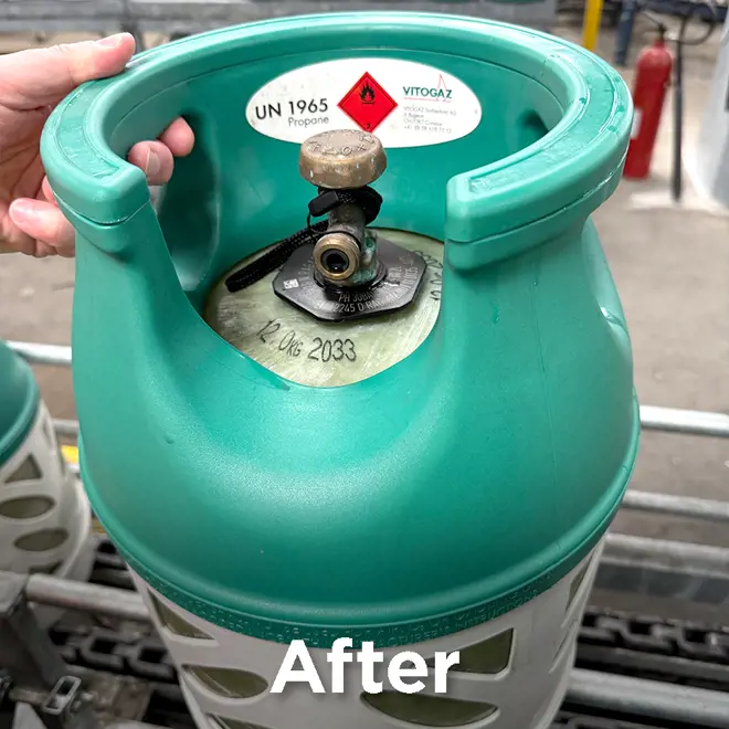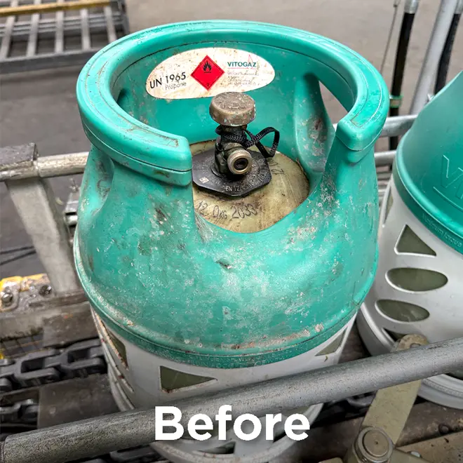 As the leading supplier of liquefied gas in Switzerland, VITOGAZ are well-known for their commitment to top quality which, naturally, extends to keeping LPG cylinders clean – and with good reason. When cylinders are returned from use, they often carry residues like oil, grease, dust, and dirt. Left uncleaned, these contaminants can affect the cylinders’ function, appearance, and perceived safety.