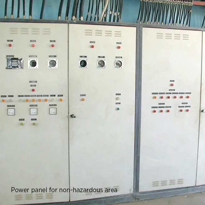 - Main switchboards and secondary switchboards in non-hazardous area and hazardous area