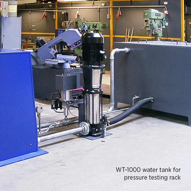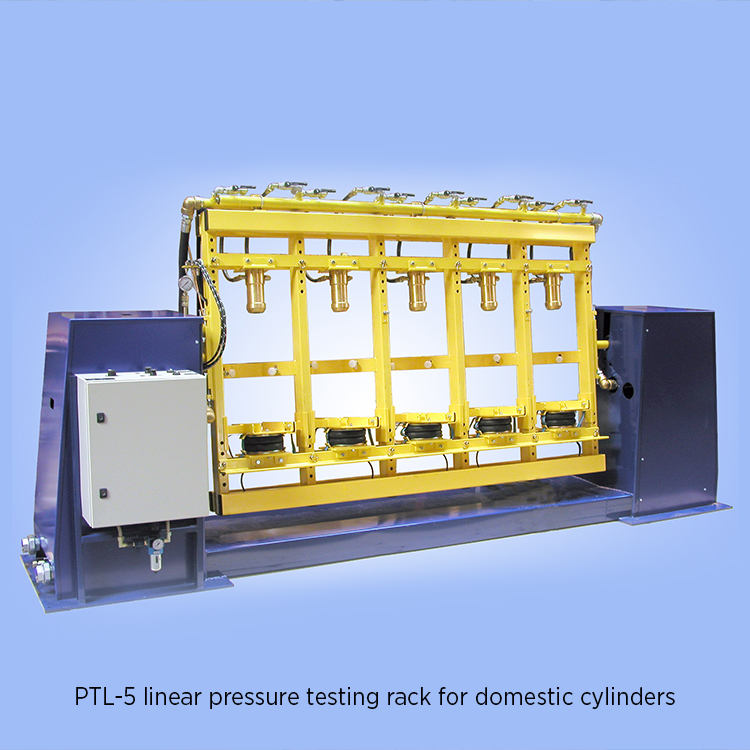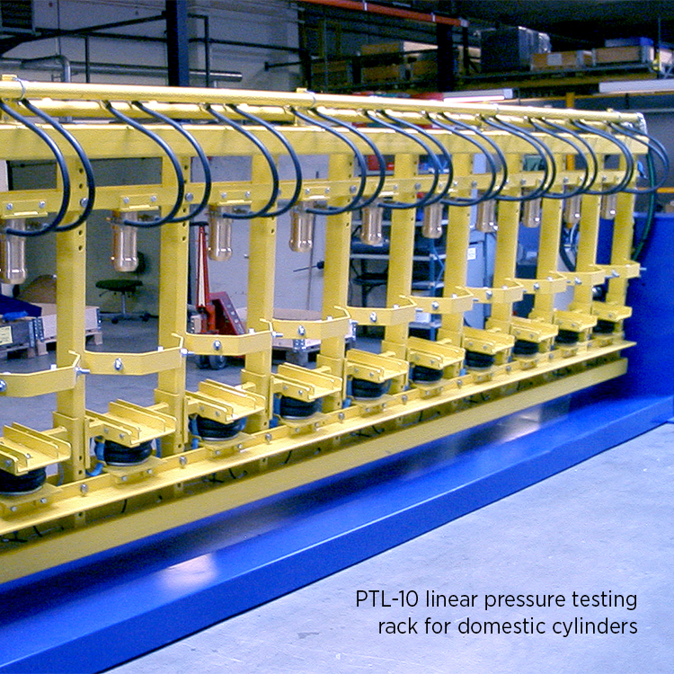 - Stand-alone pressure testing rack for 5 or 10 domestic cylinders