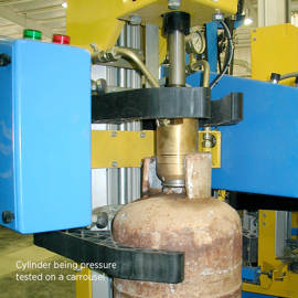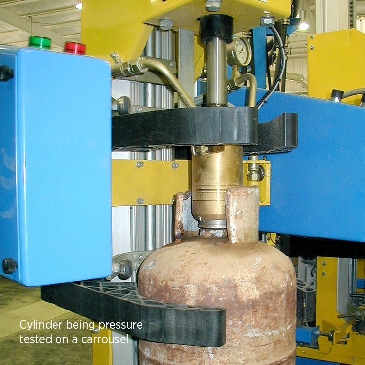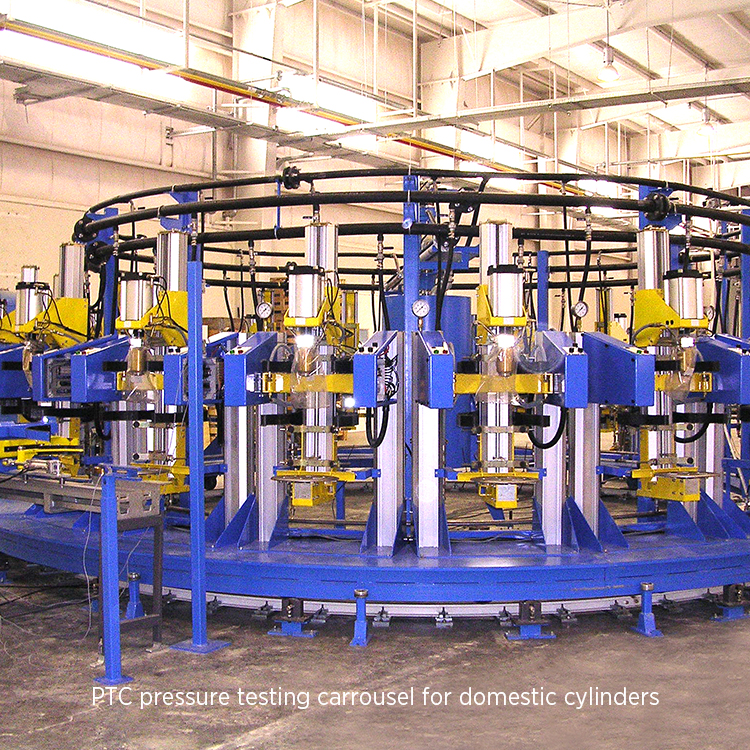 - Carrousel system with up to 20 pressure testing units for domestic cylinders