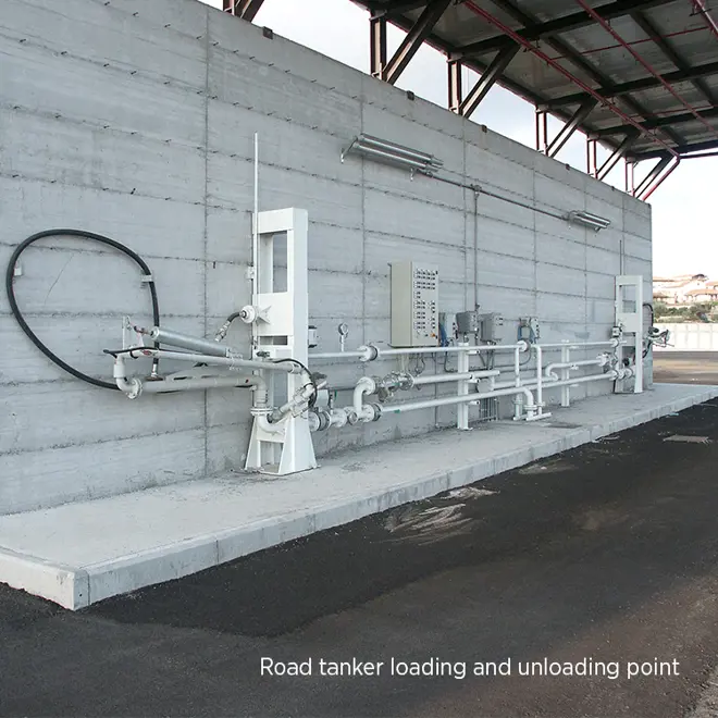 - Loading and unloading points for road tankers, rail tank wagons and ships